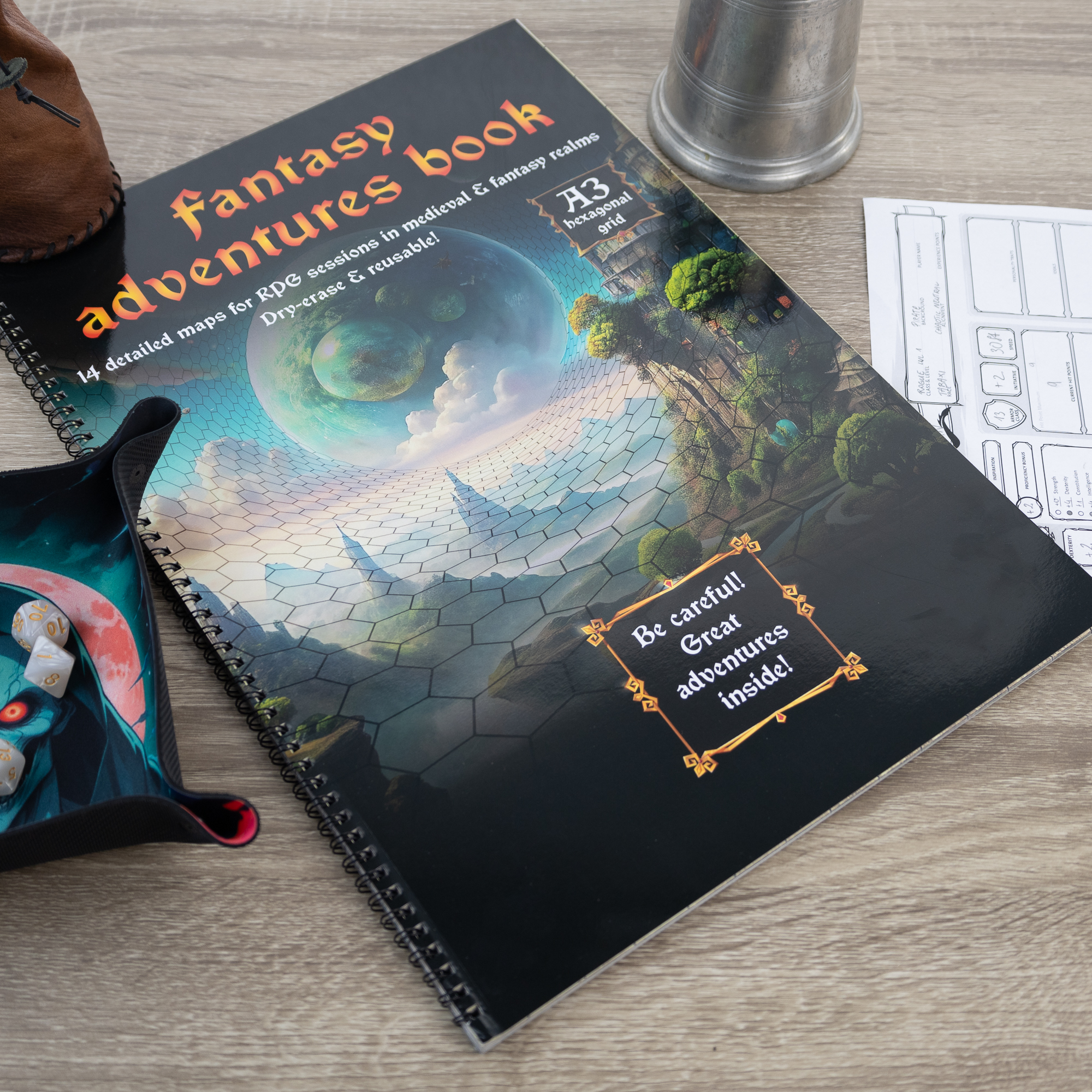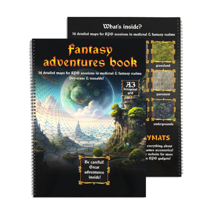 Fantasy Adventures book - A3 Księga RPG - 14 wzorów map - siatka heksagonalna