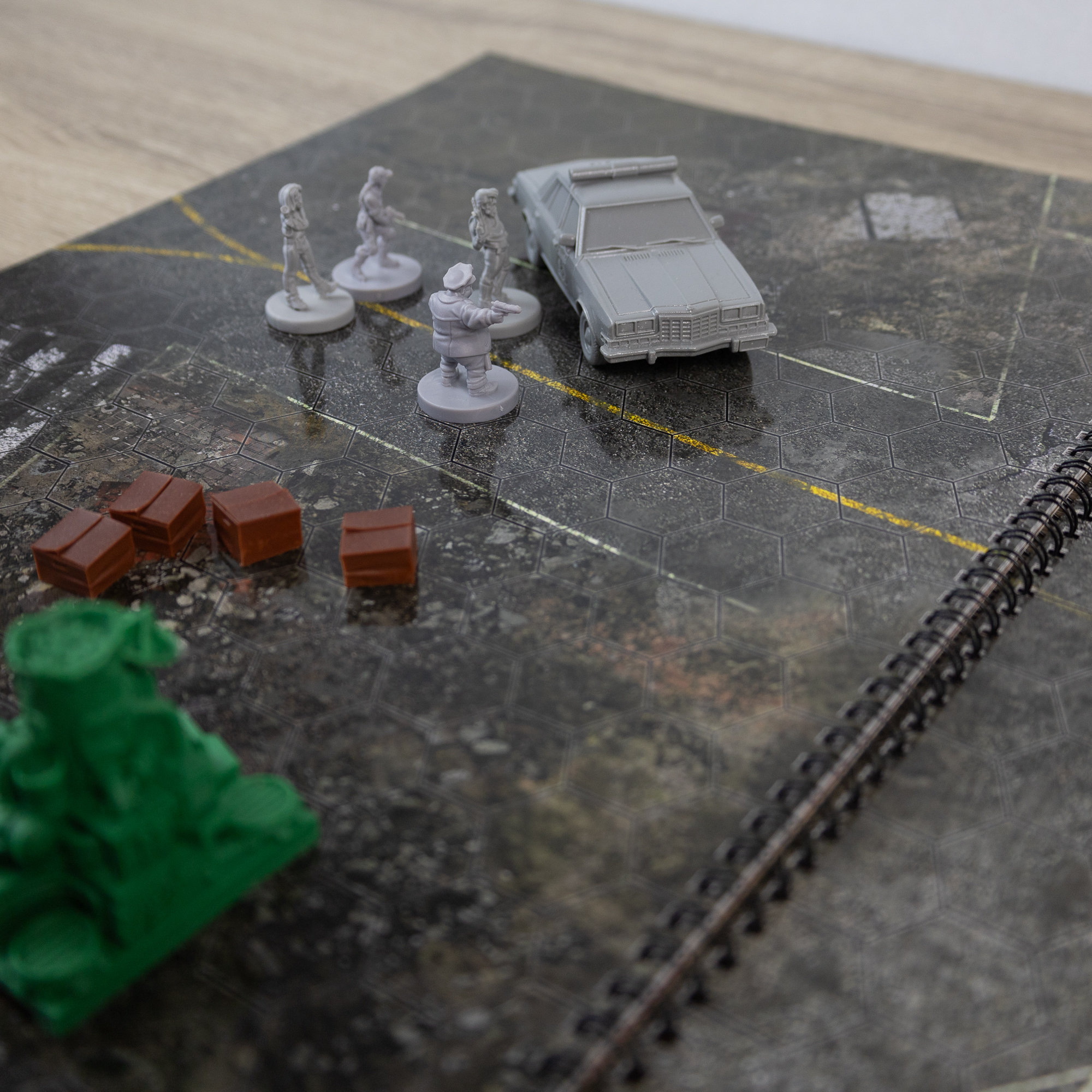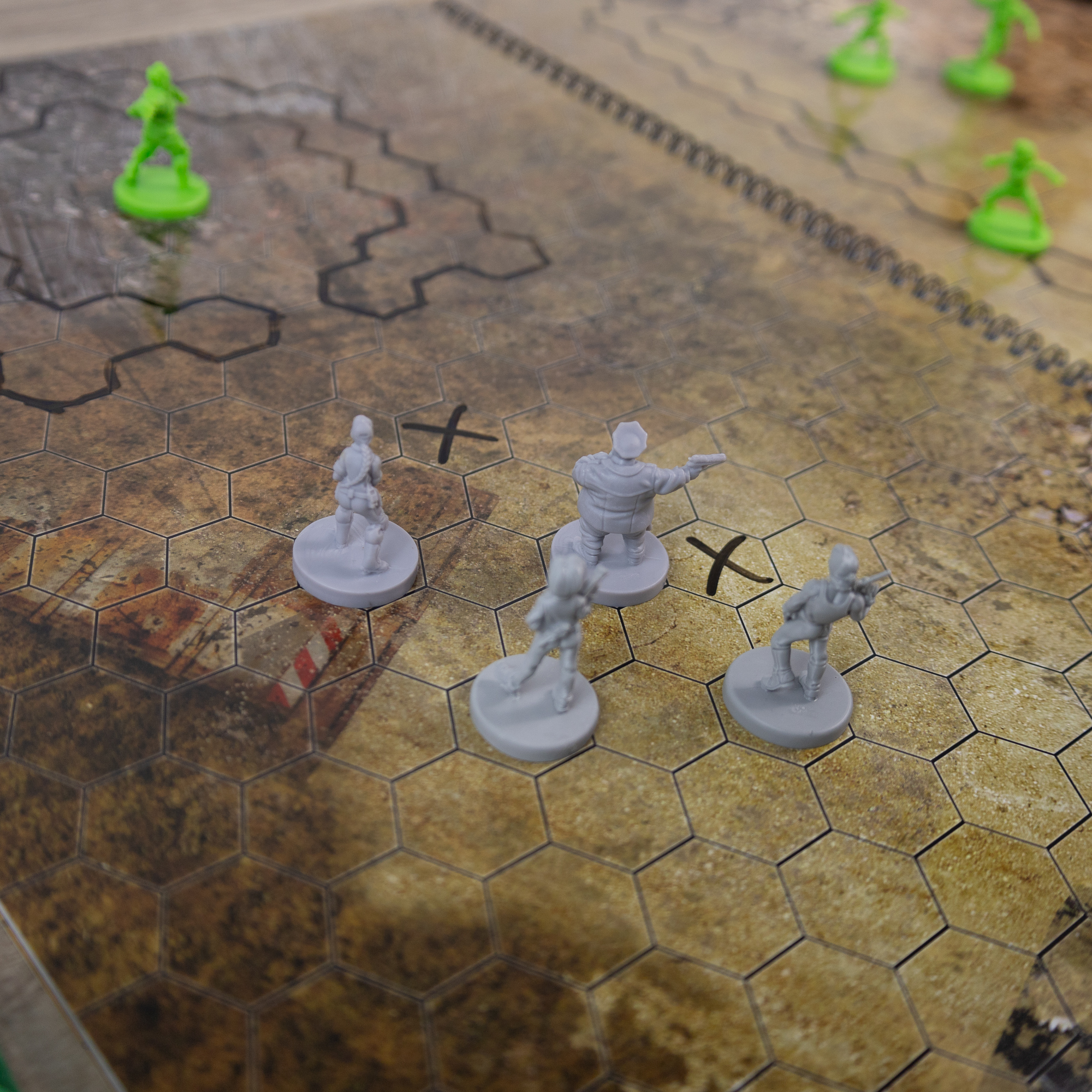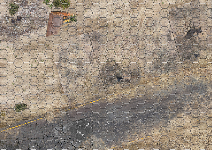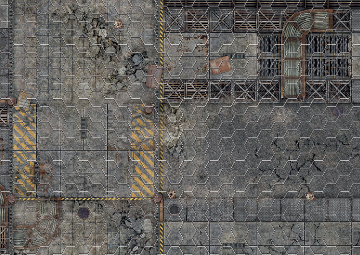 Każda mapa jest wykonana z wysokiej jakości materiału, który jest suchościeralny, co oznacza, że możesz na niej swobodnie rysować i zaznaczać pozycje swoich postaci, a potem z łatwością wyczyścić, aby przygotować kolejną scenę. Siatka heksagonalna umożliwia precyzyjne planowanie i dynamiczne prowadzenie rozgrywki, idealne dla fanów systemów takich jak Neuroshima, Starfinder, Shadowrun, Cyberpunk, a także innych systemów, które korzystają z rozgrywek opartych na heksach.