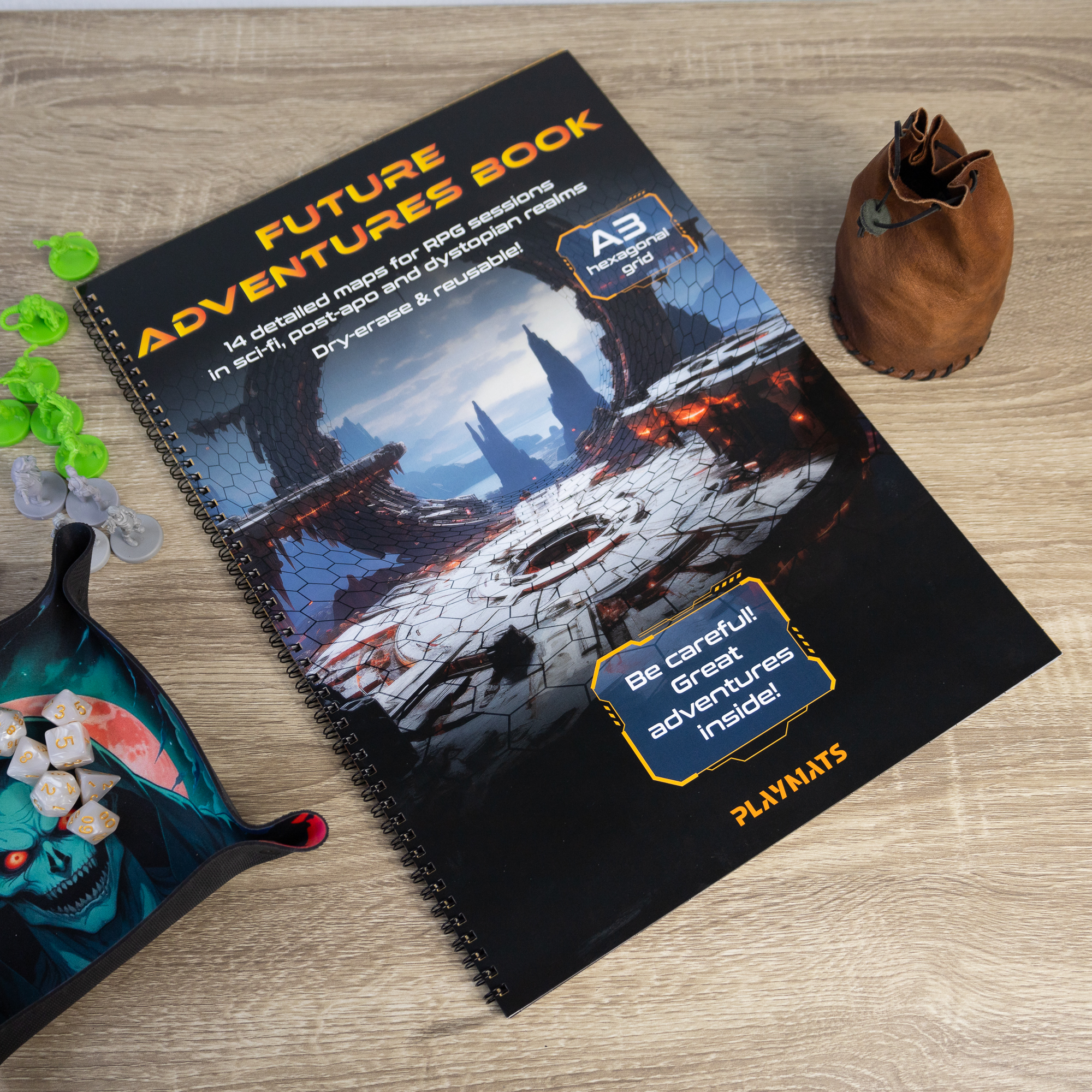 Opis / Future Adventures book - A3 Księga RPG - 14 wzorów map - siatka heksagonalna