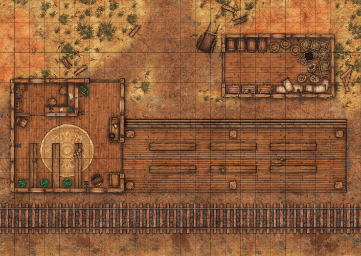 Opis / Księga RPG Western & Steampunk – 18 map A3 do sesji RPG z siatką