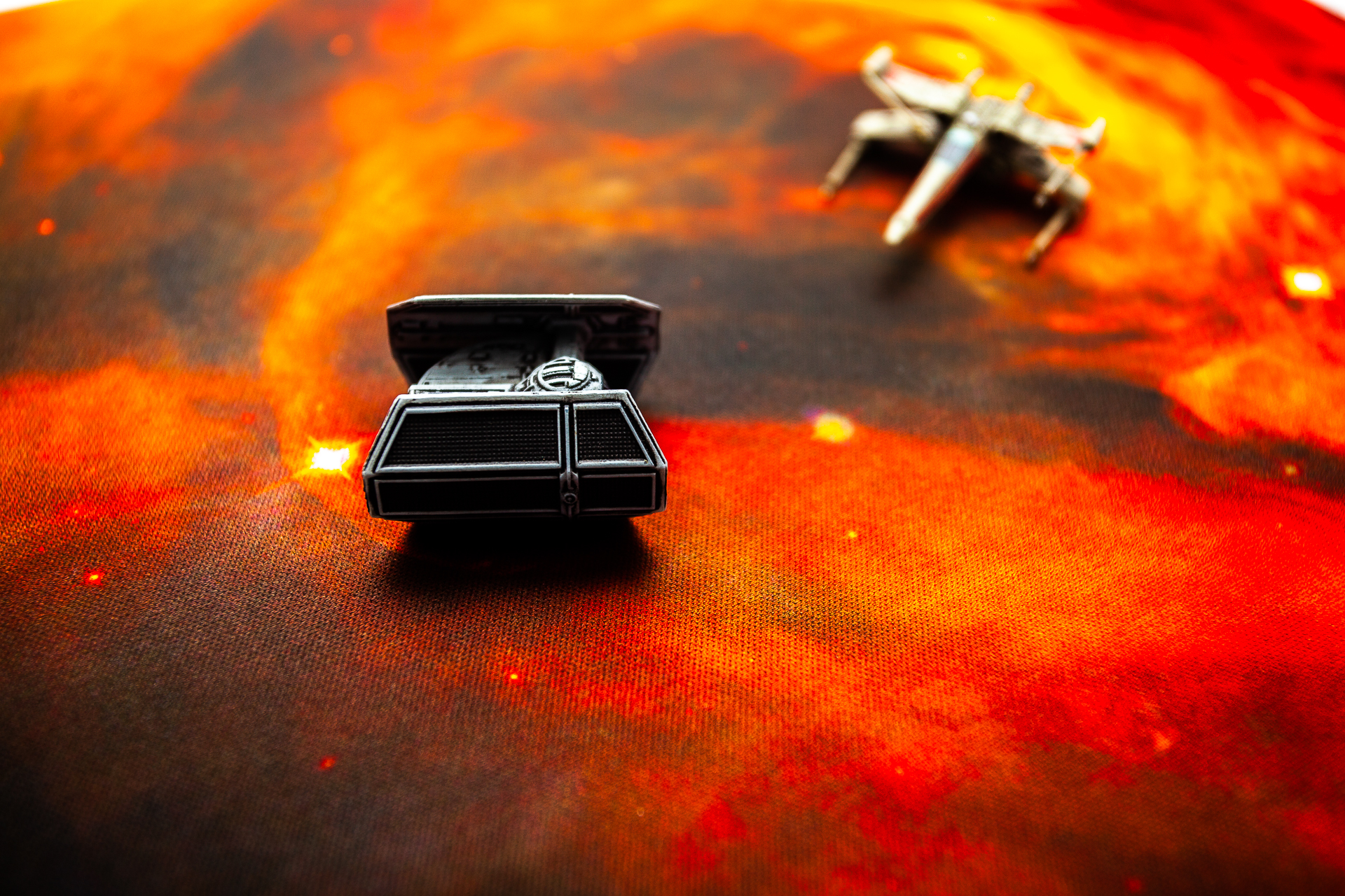 Gęste obłoki kosmicznego pyłu, wirujące mgławice i odległe gwiazdy tworzą scenerię, która zmienia zwykłą planszę w realistyczne pole bitwy. Czy Twoja flota zdoła prześlizgnąć się przez ten galaktyczny chaos, czy może przeciwnik wykorzysta zamieszanie, by zyskać przewagę? Bez względu na scenariusz, każda bitwa na tej macie staje się jeszcze bardziej widowiskowa.