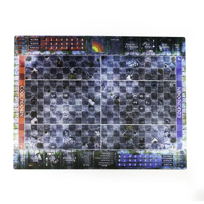 Rozmiar 90x70 cm sprawia, że mata jest w pełni kompatybilna zarówno z klasycznym Blood Bowlem, jak i jego szybszą wersją - Blood Bowl Sevens. Wzór i układ elementów został dopasowany do oficjalnych wytycznych, co czyni ją idealnym wyborem zarówno do gier casualowych, jak i turniejów.