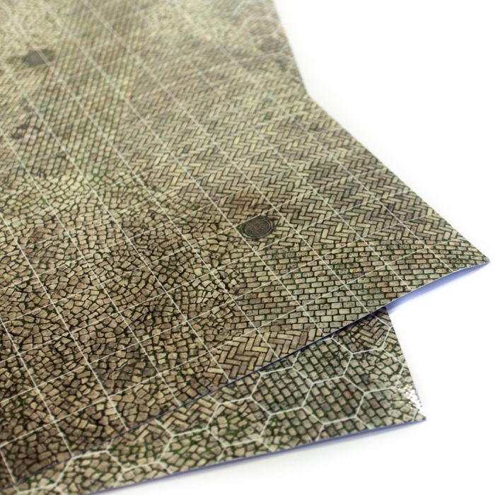 Mata przedstawia brukowany plac średniowiecznego miasta, którego struktura doskonale oddaje klimat fantasy. Szczegółowy nadruk w wysokiej rozdzielczości ukazuje nierówne, zużyte kamienie porośnięte mchem – idealne tło dla pościgów, targów pełnych złodziei i walk o przetrwanie w gęsto zabudowanych dzielnicach.