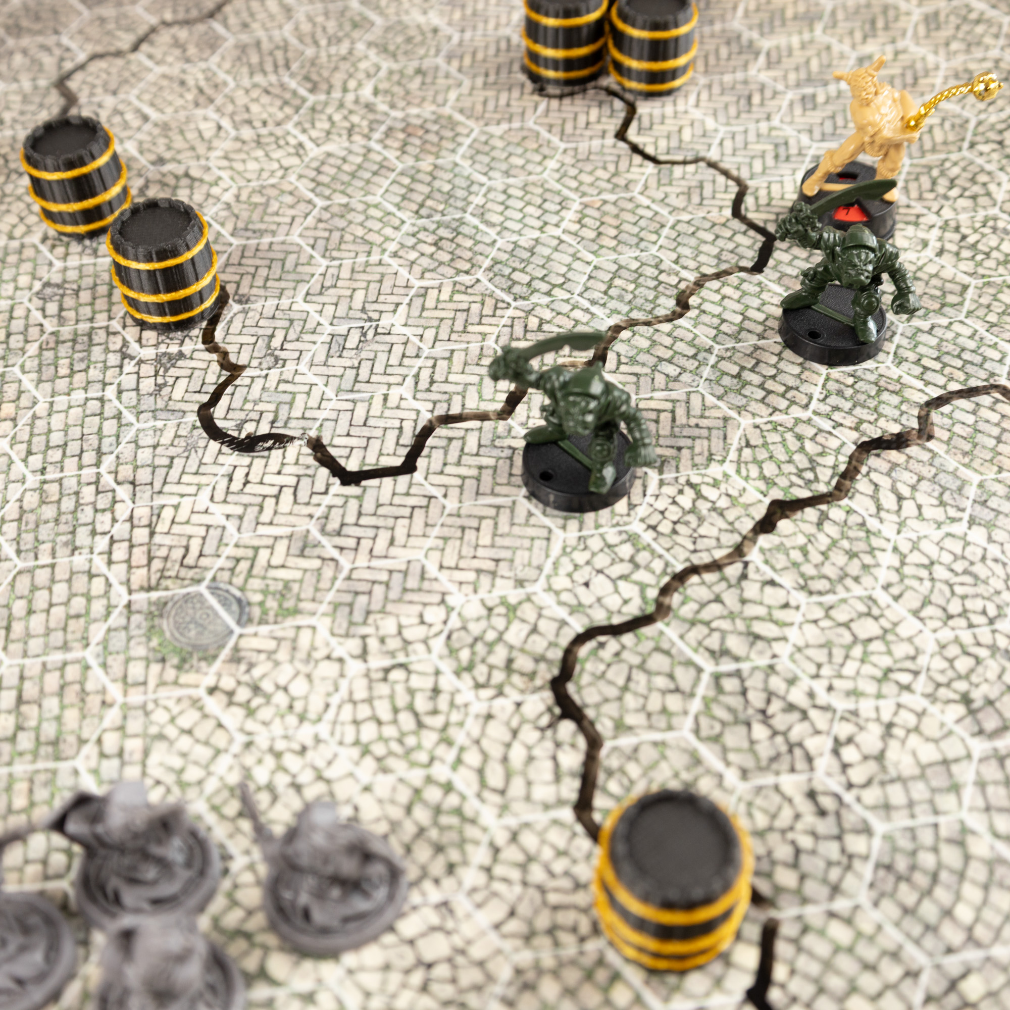 Czy Twoja drużyna planuje infiltrację strażnicy? Może kupiec proponuje podejrzanie tanie towary na miejskim rynku? Mata Bruk sprawdzi się zarówno jako plansza do walki, jak i element narracyjny Twojej sesji. Możesz ją wykorzystać do eksploracji miast, organizowania pościgów lub planowania bitew ulicznych.