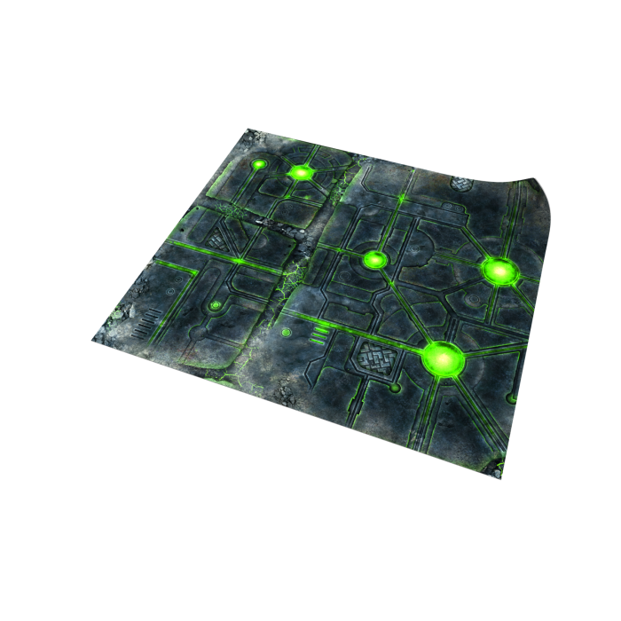 Odkryj ruiny zaawansowanej cywilizacji dzięki macie "DeathWorld Tomb" (48"x48" / 122x122 cm), idealnej do gier takich jak Necromunda i Infinity. Chłodne odcienie szarości i pulsujące zielone światła tworzą scenerię pełną technologicznych tajemnic. To doskonałe tło dla epickich starć w świecie, gdzie każda struktura skrywa nieznane moce. Przygotuj swoje armie na strategiczne pojedynki w futurystycznym otoczeniu!