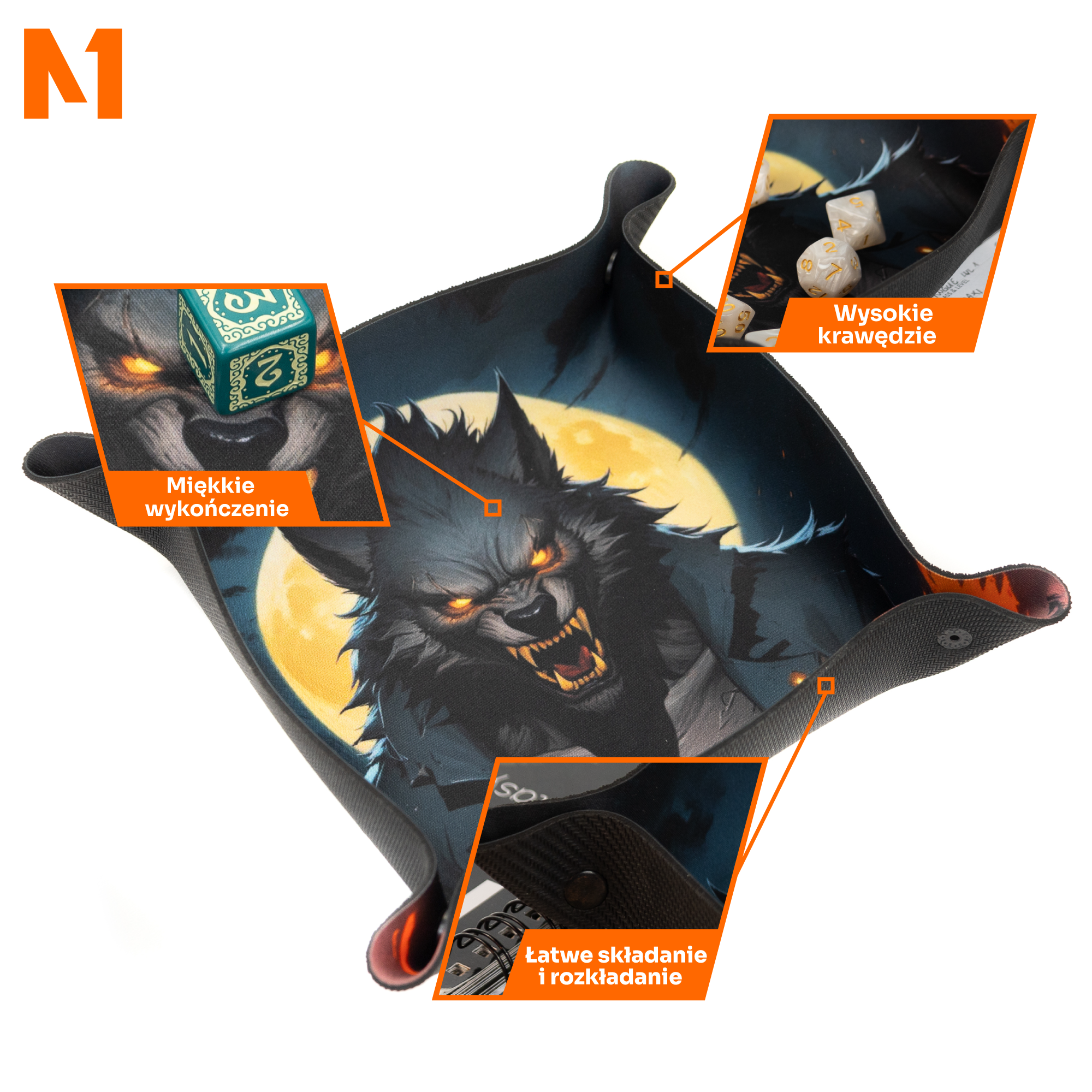 Opis / Tacka na kości - Dice Tray - Wilkołak 22x22 cm