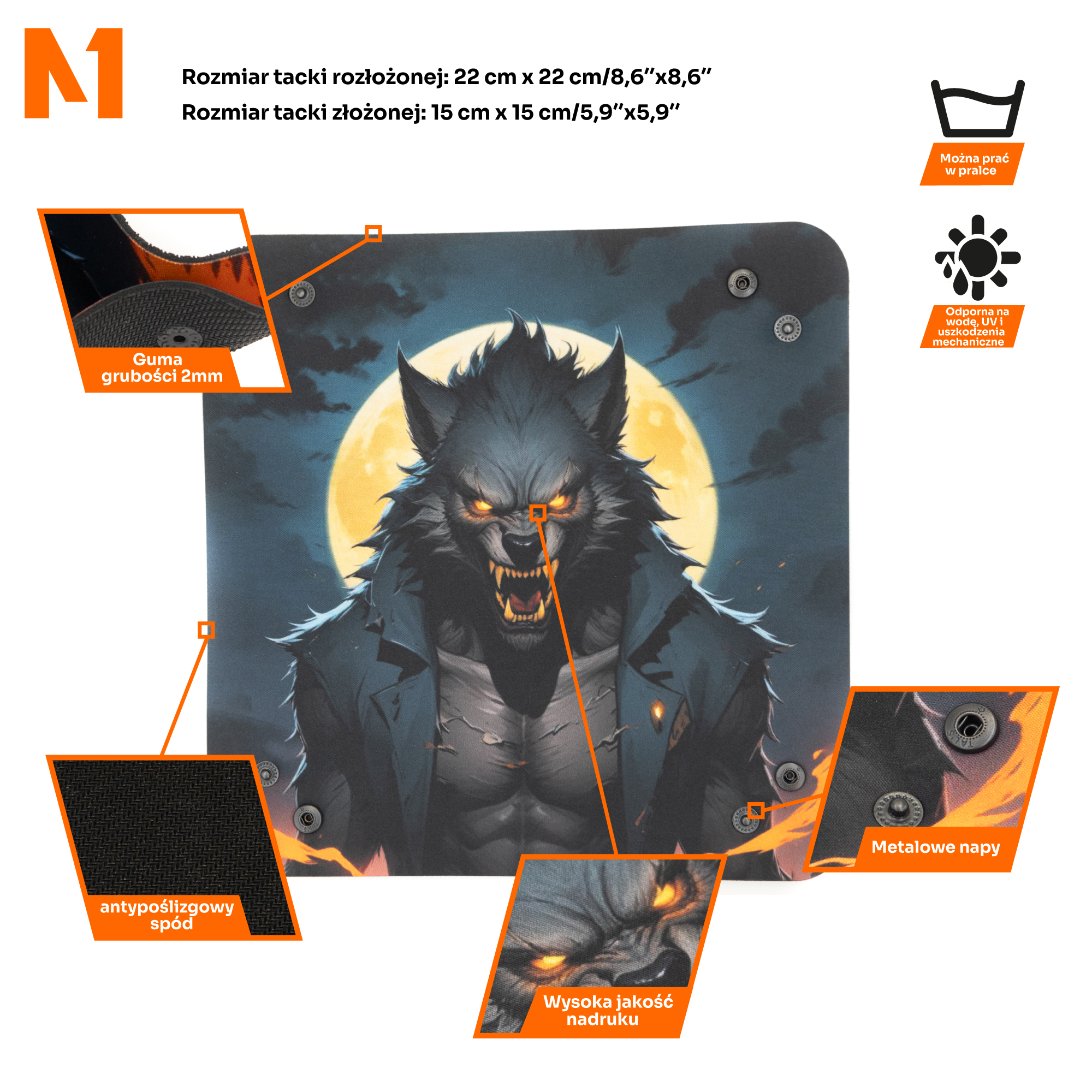 - Unikalny design: Wzór wilkołaka na tle pełni księżyca dodaje mrocznej atmosfery każdej grze, zachwycając graczy swoim szczegółowym wykonaniem.