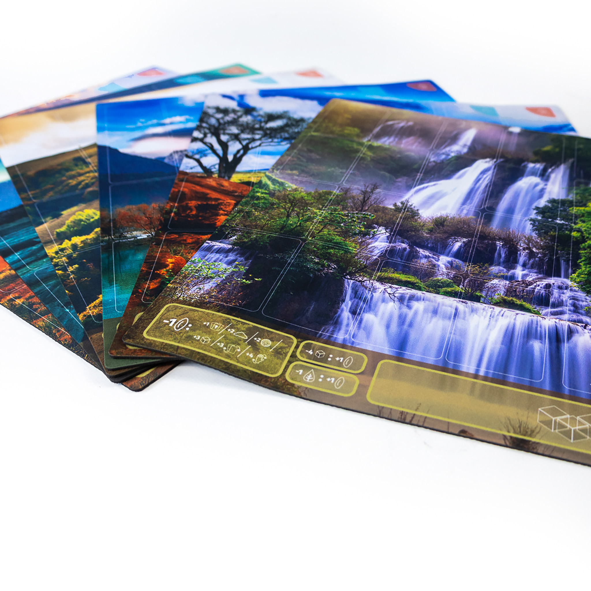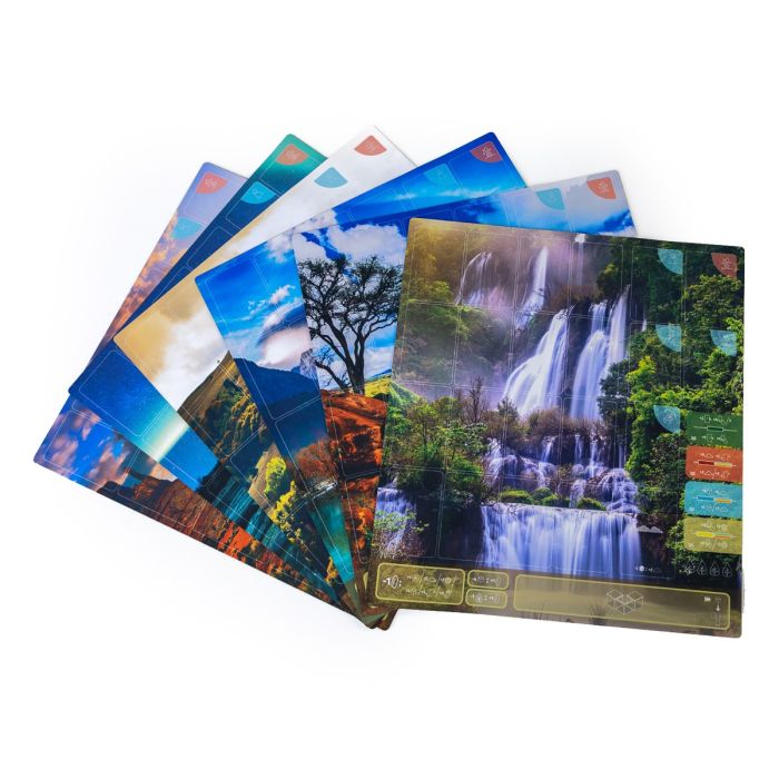 Jeśli gra planszowa Ziemia podbiła Twoje serce, to gumowe maty do gry inspirowane różnorodnością naszej planety z pewnością dodadzą Twojej rozgrywce głębi i stylu. Oto zestaw 6 tematycznych mat gracza, który nie tylko zastępuje standardowe planszetki z pudełka, ale też buduje atmosferę wokół Twojego ekosystemu. Każda mata przedstawia inny krajobraz – od lasów tropikalnych po mroźne pustkowia – i została zaprojektowana z myślą o fanach gry Ziemia oraz dodatku Obfitość.
