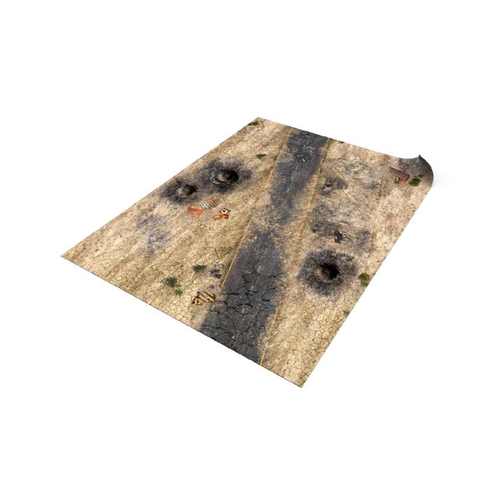The “Wasteland” mat captures the harshness of a devastated world with intricate details. Cracked roads, explosion craters, abandoned debris, and parched earth set the stage for dramatic battles. Every detail is carefully crafted to create a realistic, immersive backdrop for your games.