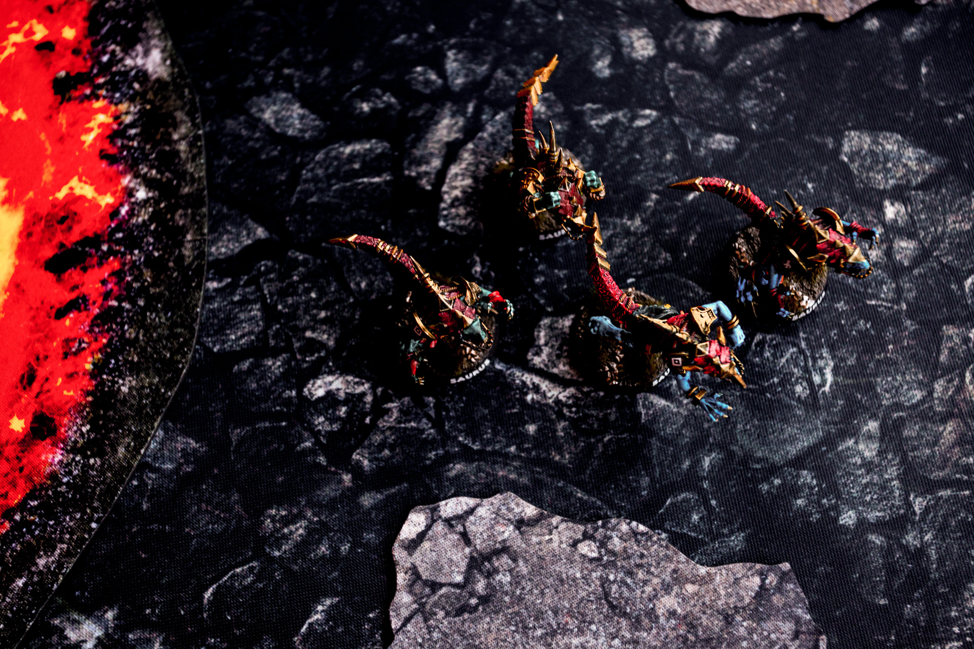 Mata bitewna „Wulkaniczny świat” w rozmiarze 48"x48" (122x122 cm) to idealne tło dla epickich bitew toczących się w spalonej, wulkanicznej scenerii. Dzięki niezwykłej dbałości o szczegóły i wysokiej jakości materiałom, ta mata stanie się nieodłącznym elementem Twoich rozgrywek w takich grach jak Warhammer: Age of Sigmar oraz Warhammer 40K / Horus Heresy. Realistyczny nadruk, trwałość i funkcjonalność sprawiają, że każda bitwa staje się bardziej immersyjna i emocjonująca.