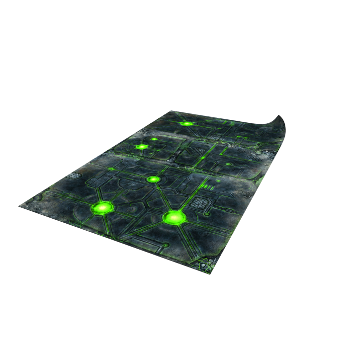 Mata bitewna "DeathWorld Tomb" to idealny wybór dla fanów futurystycznych starć, szczególnie w grach takich jak Warhammer 40,000 i Horus Heresy. Jej rozmiar 44”x30” perfekcyjnie pasuje do dynamicznych rozgrywek, a niezwykle szczegółowy design maty, na którym zobaczysz rozświetlone energetyczne sieci i zniszczone struktury technologicznej cywilizacji, przenosi Cię wprost do świata pełnego zaawansowanych technologii i tajemnic.