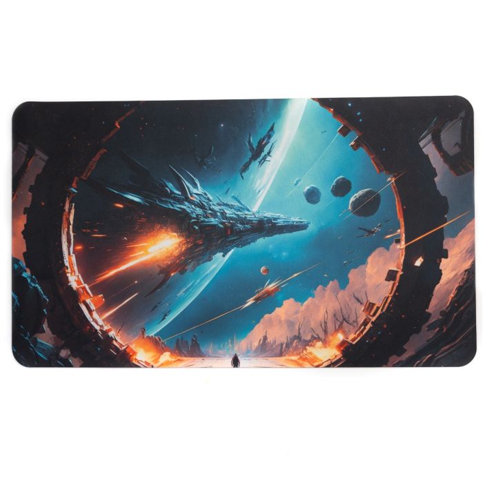 Wkrocz do kosmicznej przygody z naszą matą karcianą "Kosmiczny pierścień"! Wykonana z najwyższej jakości gumy, zapewnia doskonałą przyczepność i trwałość. Niezwykła grafika przedstawiająca epicką bitwę kosmiczną przeniesie Twoje rozgrywki na nowy poziom. Idealna dla każdego fana science fiction!
