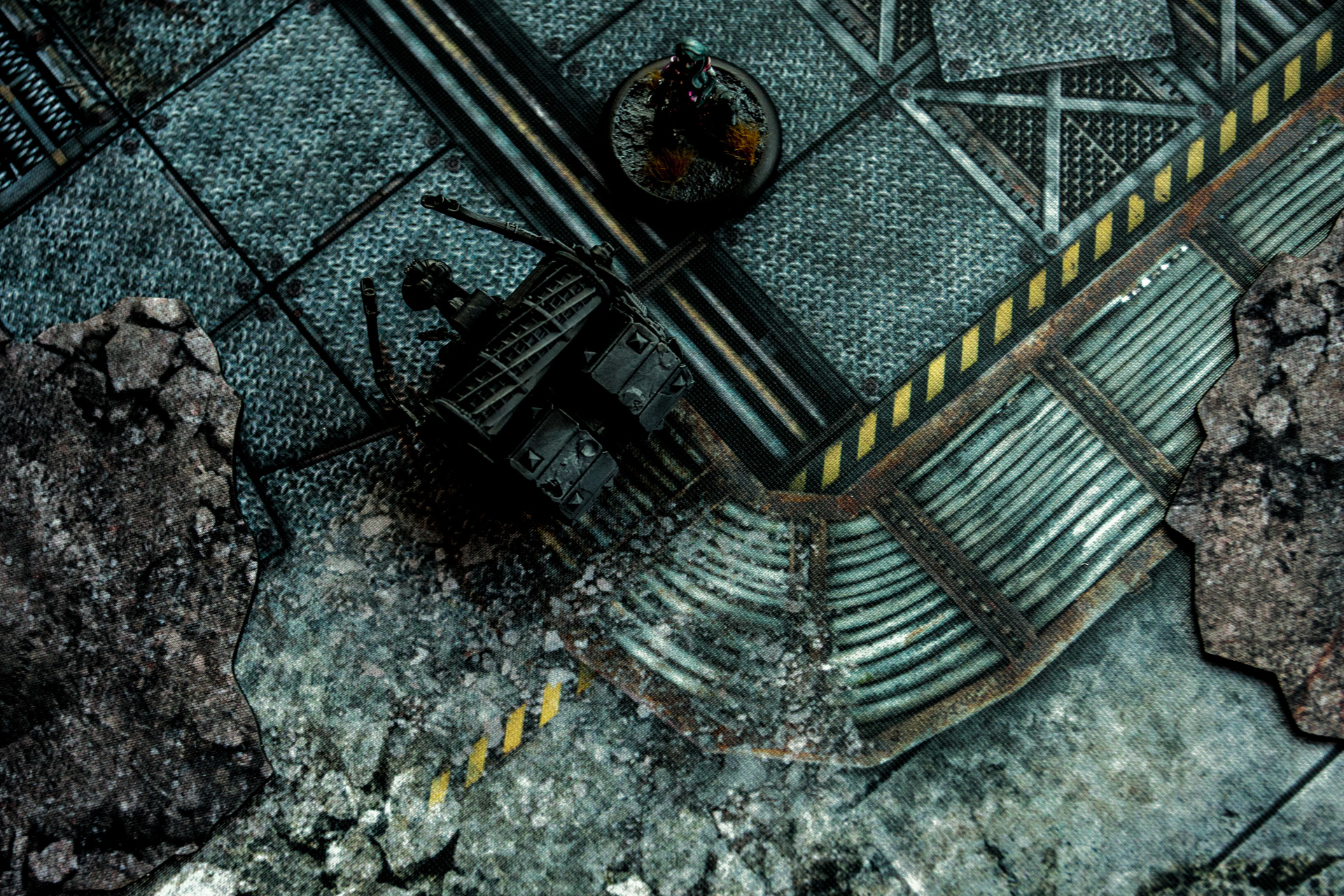 Zanurz się w klimacie "Upadłego Miasta". Ta mata przedstawia zniszczony świat przyszłości, pełen popękanych betonowych powierzchni, rdzewiejących kratownic i pozostałości po dawnej świetności przemysłowego miasta. Każdy element wzoru został wykonany z najwyższą starannością, aby stworzyć scenerię, która w pełni odda mroczny klimat postapokaliptycznej rzeczywistości. Twoje drużyny Kill Team zyskają realistyczne pole bitwy, które podkreśli dramatyzm starć.