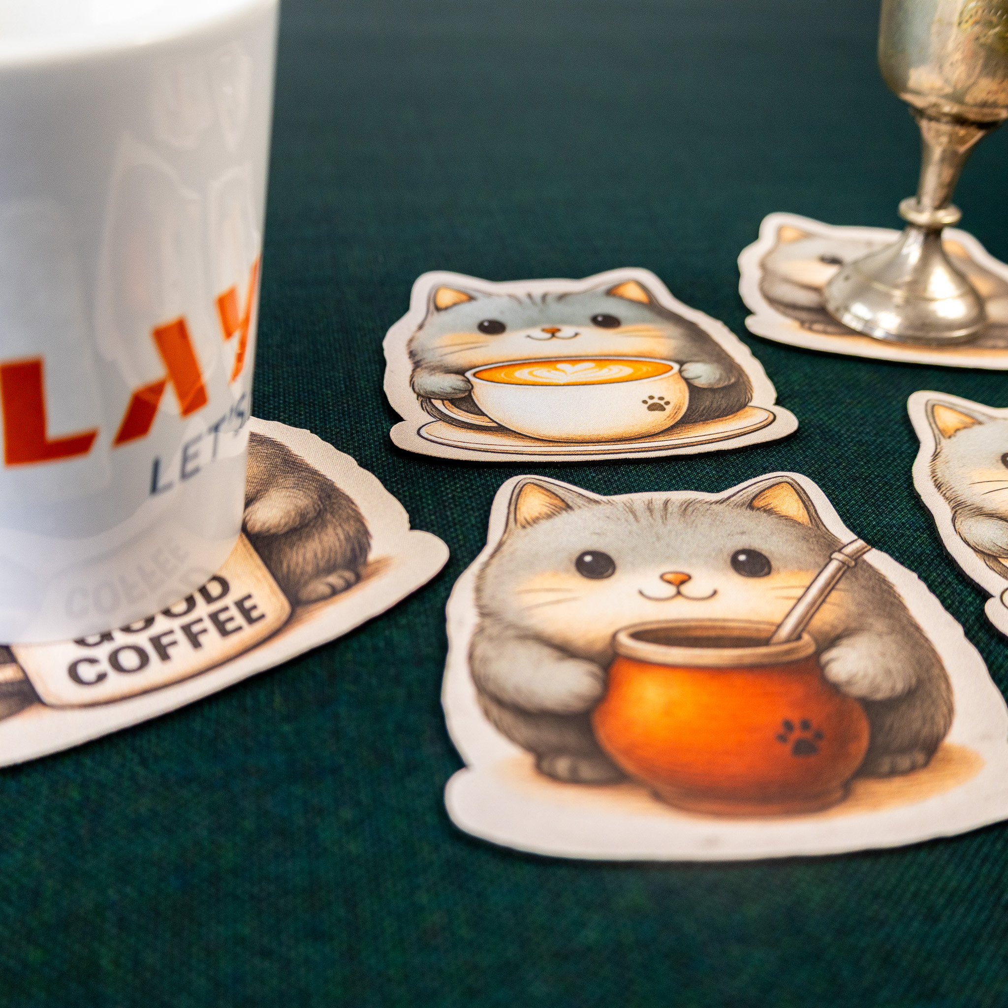 Podkładki pod kubek - Kotki z kubkami (Kotładki) - 5 sztuk