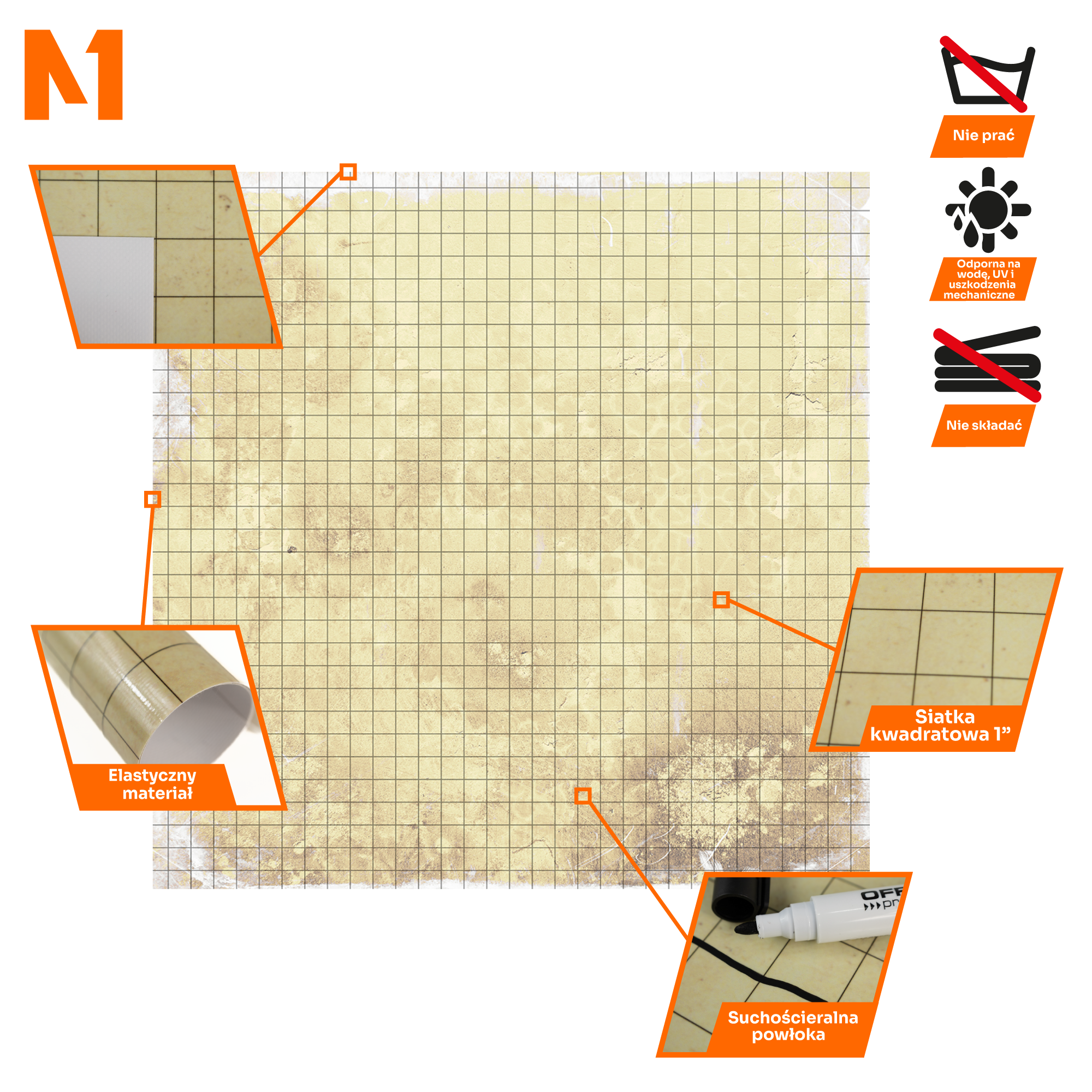 Mata Suchościeralna "Papirus" o wymiarach 80 cm x 80 cm (31,5" x 31,5") z siatką kwadratową to idealne narzędzie dla mistrzów gier RPG. Wykonana z wytrzymałego PVC o grubości 0,7 mm, umożliwia wielokrotne rysowanie i modyfikowanie map oraz notatek. Doskonała do gier takich jak Dungeons & Dragons, Pathfinder czy Warhammer Fantasy Roleplay, zapewnia wszechstronność i elastyczność w planowaniu sesji.