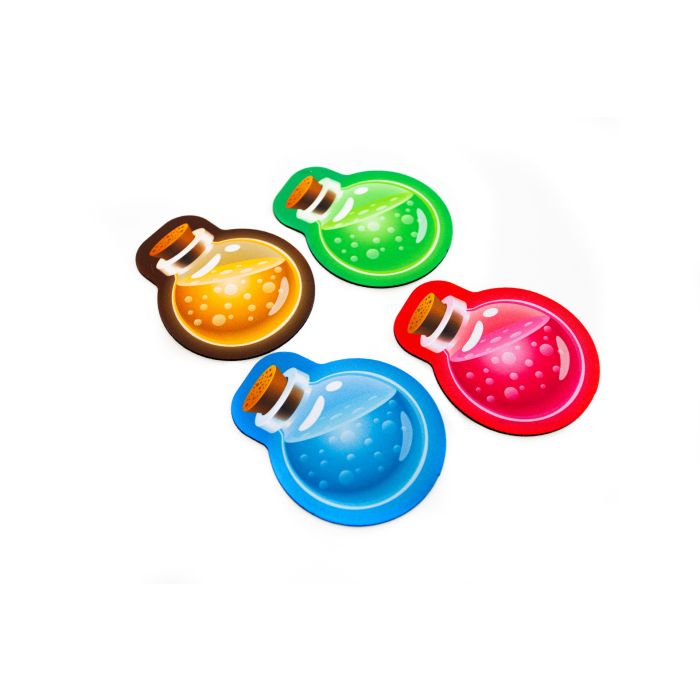 Wysokiej jakości gumowe, antypoślizgowe podkładki pod kubek z motywem mikstur z gier planszowych. Podkładki są miękkie i elastyczne, można je łatwo przechowywać lub przenosić nawet w kieszeni, a w przypadku zabrudzenia lub zalania napojem bardzo prosto je wysuszyć, wyczyścić lub nawet wyprać w pralce. Zestaw podkładek to idealny prezent dla każdego miłośnika gier. Komplet zawiera 4 sztuki.