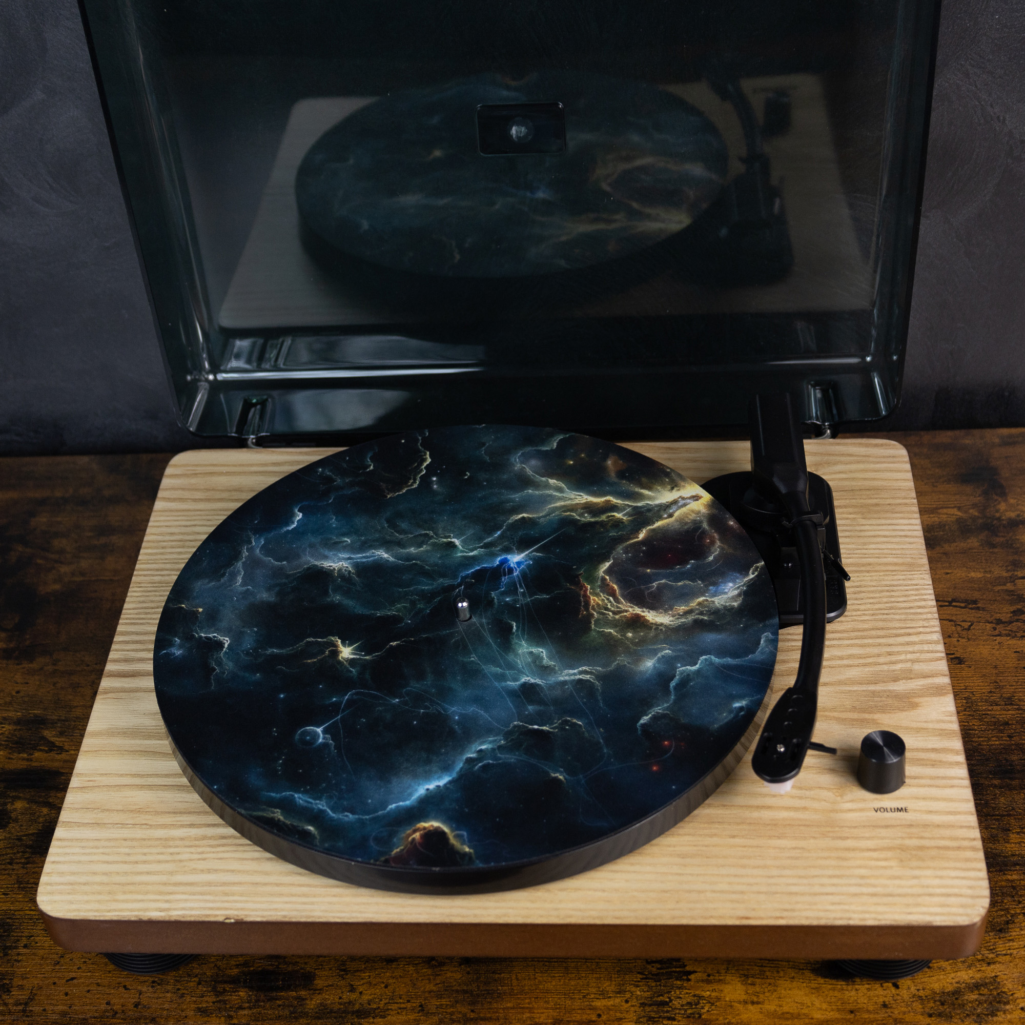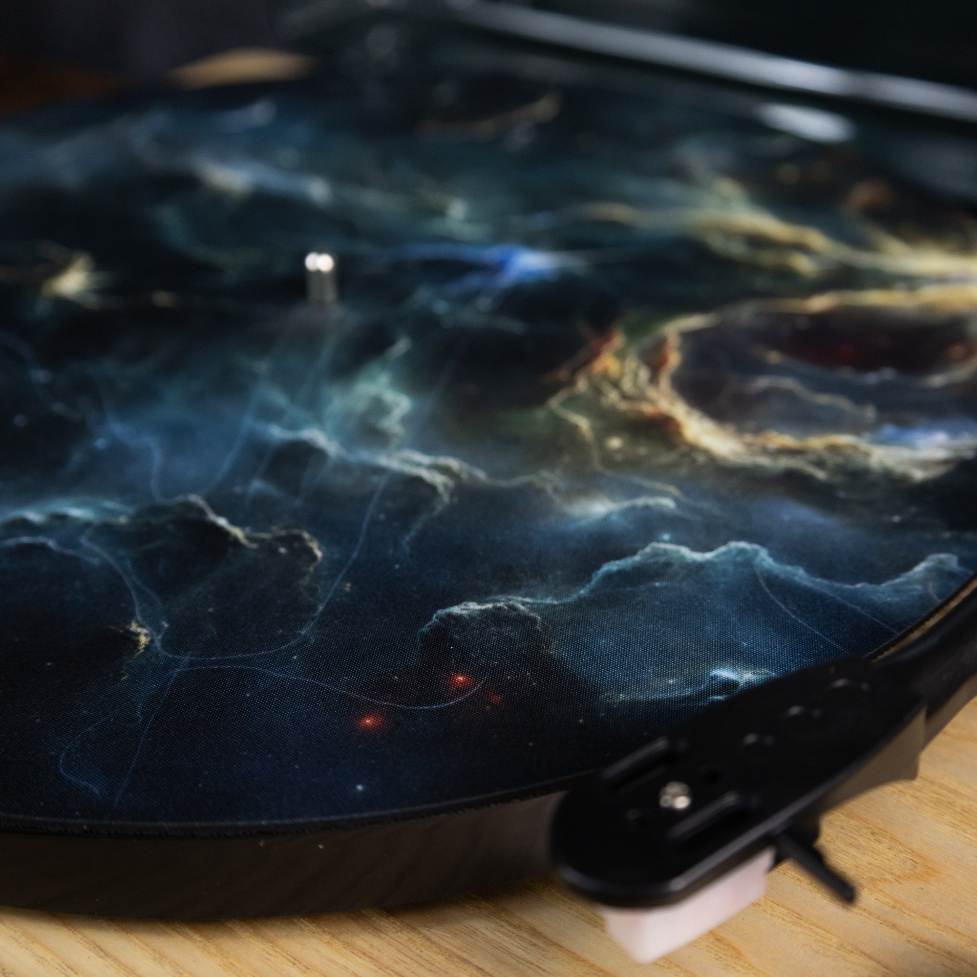 Slipmata gramofonowa "Nebula" to prawdziwy must-have dla każdego miłośnika płyt winylowych i kosmicznych estetyk. Stworzona z myślą o doskonałej jakości dźwięku i wyjątkowym wyglądzie, ta slipmata łączy funkcjonalność z artystycznym designem. Wykonana z trwałego gumowanego materiału o grubości 2 mm, spełnia najwyższe standardy w zakresie ochrony płyt winylowych oraz poprawy jakości dźwięku podczas odtwarzania.