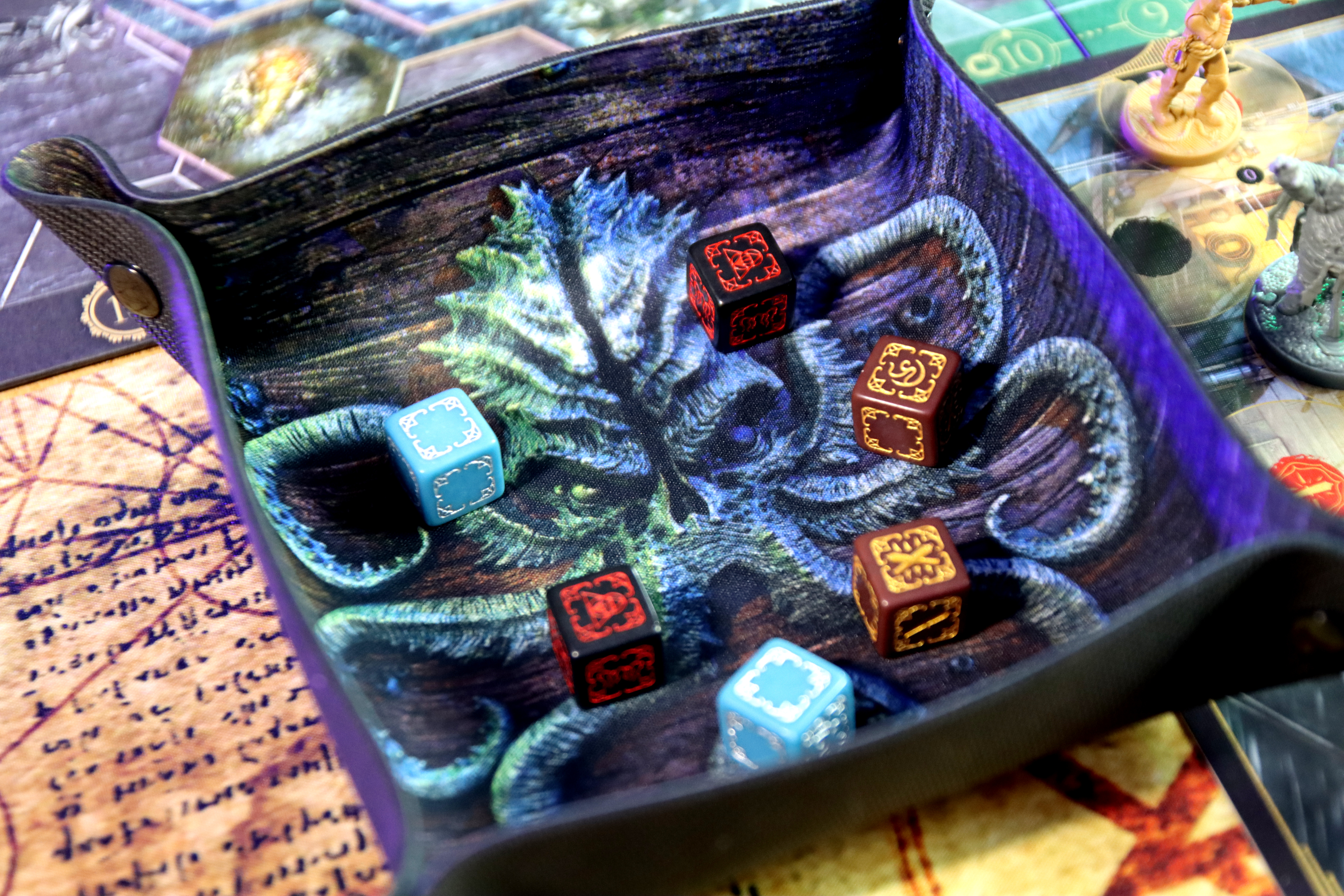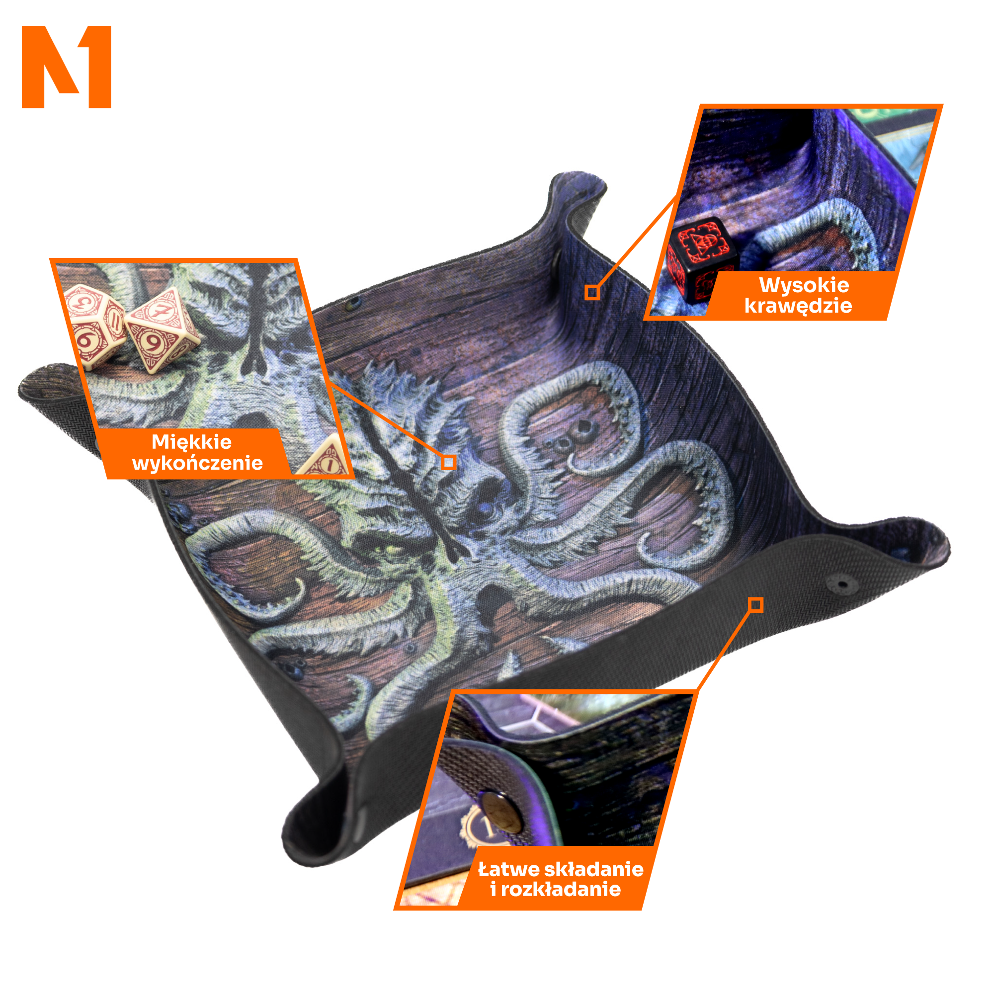 Tacka „Kraken” doskonale współgra z innymi akcesoriami do gier, takimi jak maty bitewne czy specjalne zestawy kostek. To narzędzie, które nie tylko poprawia organizację na stole, ale również dodaje głębi klimatycznej Twoim przygodom. Jeśli uwielbiasz sesje osadzone w morskich światach lub w mrocznych zakątkach wyobraźni, tacka „Kraken” idealnie wpasuje się w Twoje rozgrywki.