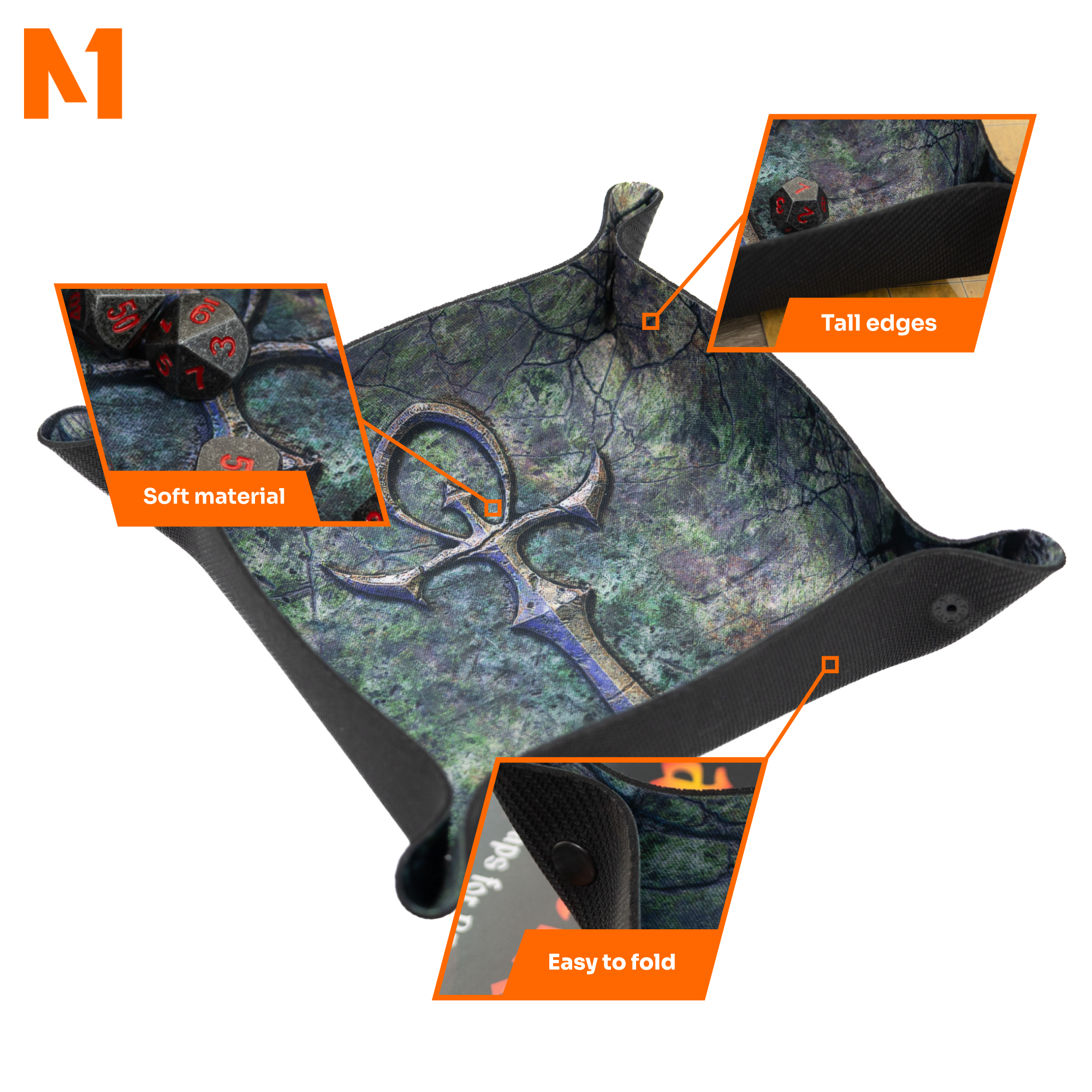 Estetyka gotycka i mistyczna symbolika tacki nie tylko przyciągają wzrok, ale także doskonale wpisują się w atmosferę gier opartych na tematyce horroru, wampirów i mrocznych sił. Tacka oferuje wystarczająco dużo miejsca na rzuty wieloma kostkami jednocześnie, co jest istotne podczas bardziej zaawansowanych gier, gdzie liczy się zarówno precyzja, jak i ilość rzutów.