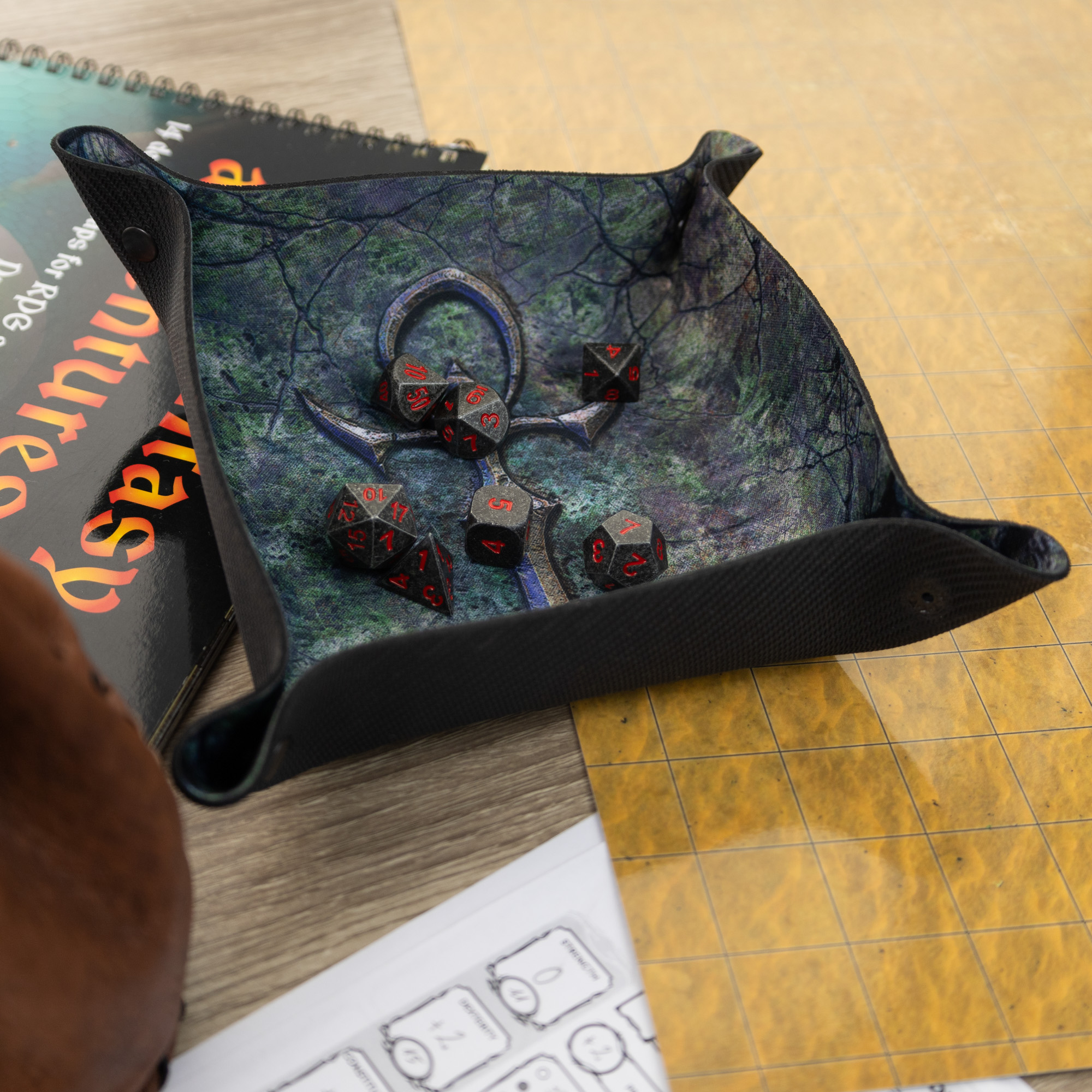 Praktyczność tego akcesorium to kolejna jego zaleta. Dice Tray "Wampirzy Ankh" posiada składany mechanizm, który umożliwia łatwe złożenie i rozłożenie tacki, co czyni ją wygodną w transporcie i przechowywaniu. Dzięki magnetycznym zatrzaskom, tacka jest stabilna i gotowa do gry w każdej chwili. Po złożeniu zajmuje niewiele miejsca, co czyni ją idealną na sesje RPG u znajomych, turnieje bitewne lub inne wydarzenia związane z grami planszowymi.