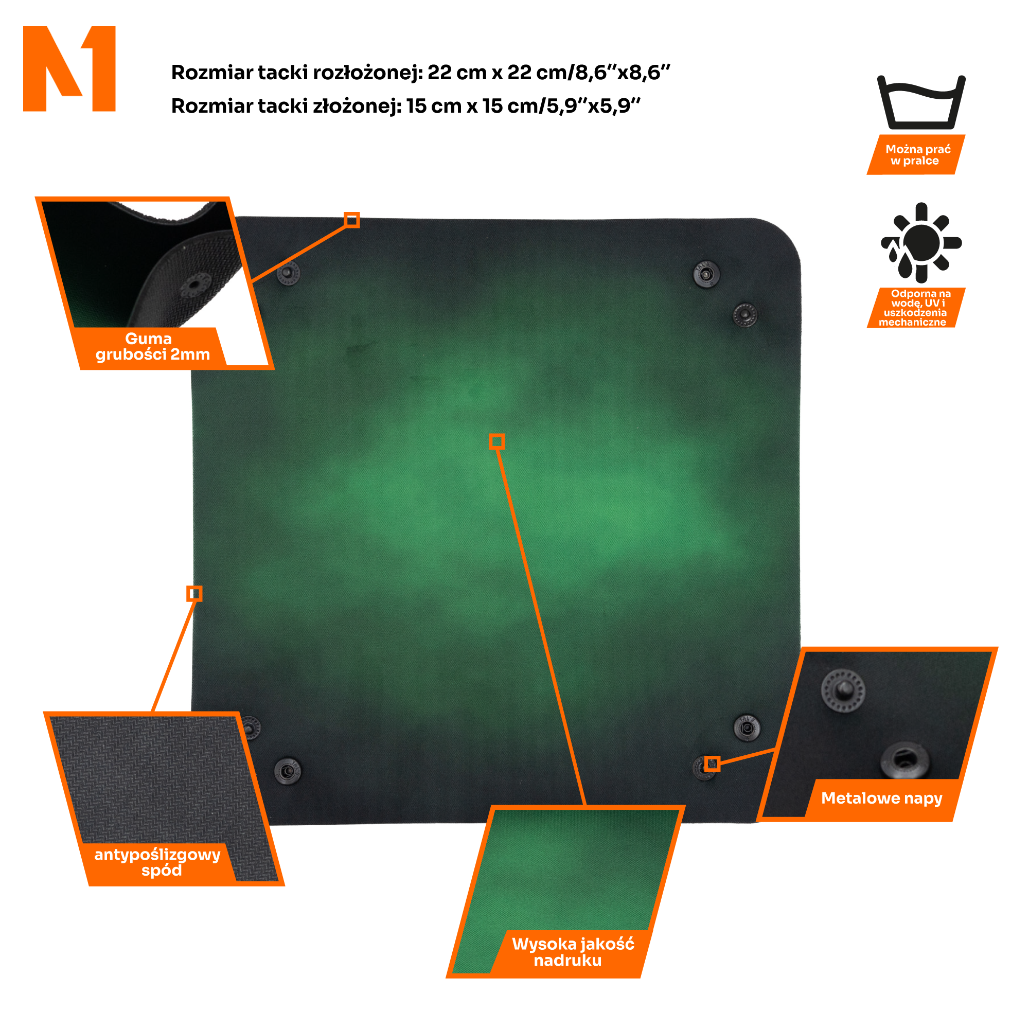 | Materiał | Guma naturalna 2 mm, poliester jednostronnie |