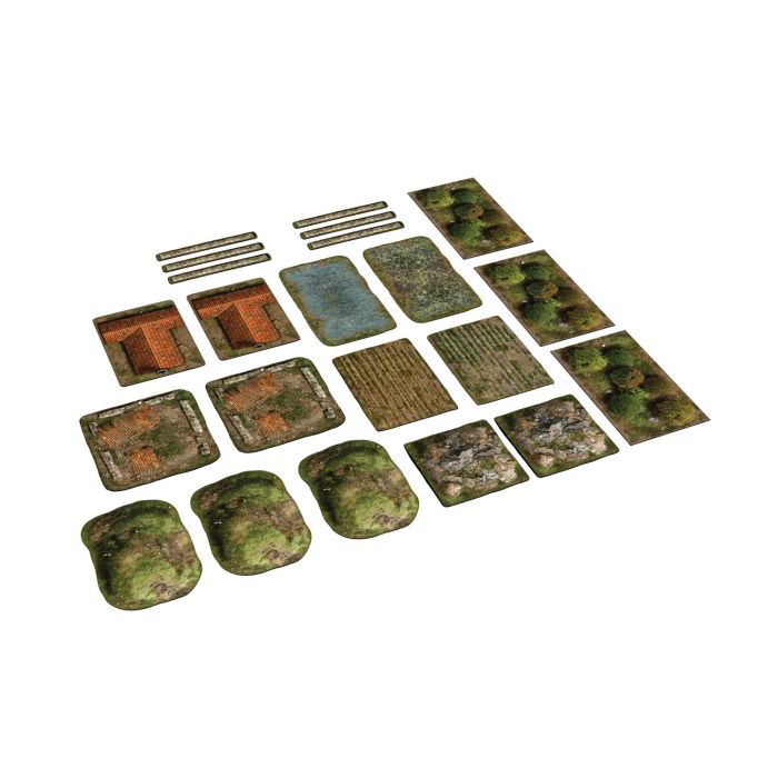 Wysokiej jakości zestaw gumowych terenów 2D z antypoślizgową powierzchnią. Łączy w sobie funkcjonalność klasycznych terenów oraz komfort stawiania figurek na płaskich powierzchniach. Zestaw składa się z dwudziestu dwóch terenów 2D.