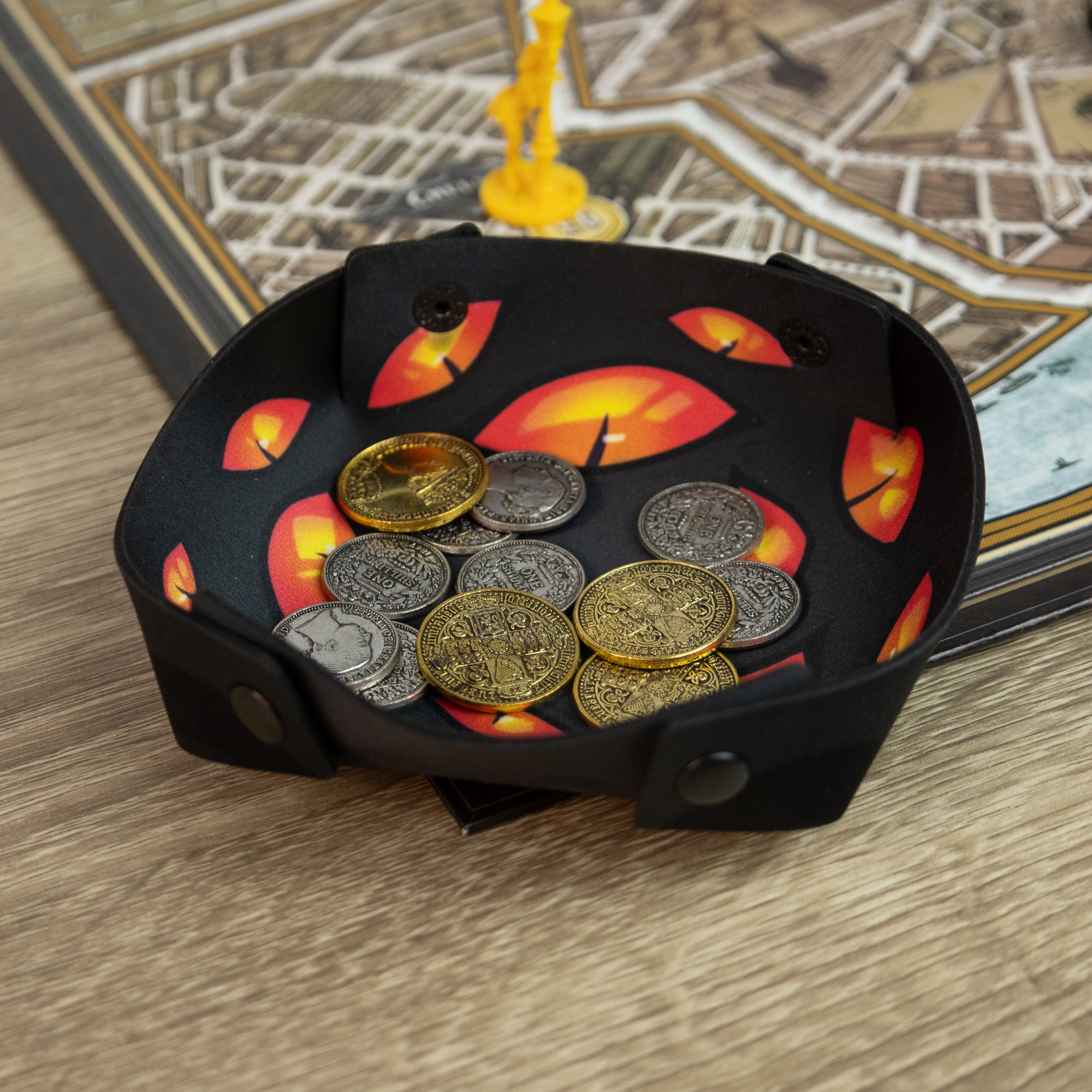 Wprowadź element tajemnicy i napięcia do swoich gier planszowych z zasobnikiem "Oczy w Ciemności". Ta wyjątkowa tacka na tokeny i inne elementy gier planszowych, ozdobiona intrygującym motywem oczu w ciemności, przeniesie Cię do świata pełnego zagadek i przygód. Idealna do przechowywania wszelkiego rodzaju akcesoriów do gier, ten zasobnik nie tylko zachwyca wyglądem, ale także zapewnia funkcjonalność i organizację Twojego stołu do gry.